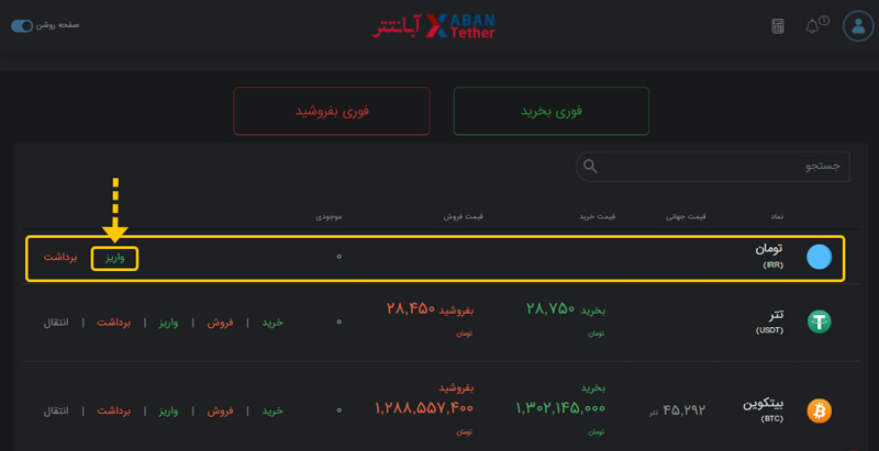 انتقال و واریز ارز دیجیتال به صرافی آبان تتر